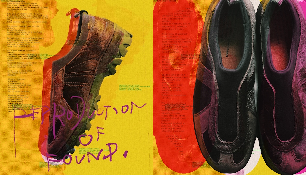 リプロダクション オブ ファウンドとレショップの最新コラボ。様々な要素が絡み合う、唯一無二のジャーマントレーナーが完成。