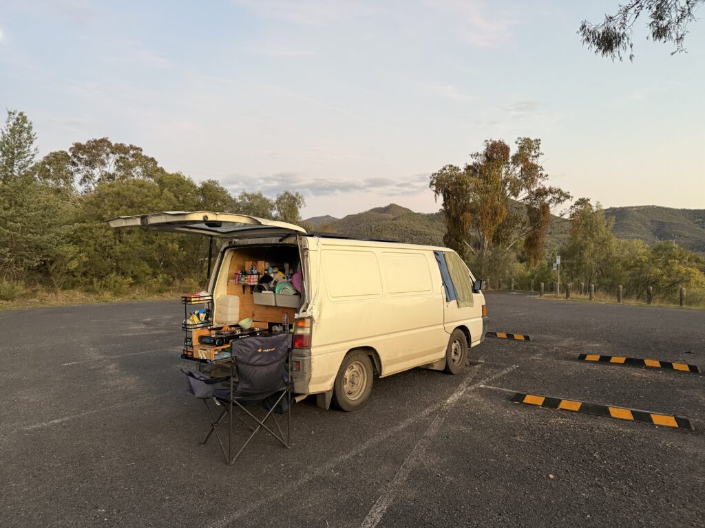 1. 車が家になる: 駐車場で寝泊まりし、車内を生活空間として最適化します。車の後部座席はベッドになり、ギアは整理され、調理器具も常備されています。